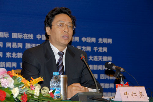山西省副省長牛仁亮在第三屆網(wǎng)絡媒體山西行開幕式上介紹山西省情。