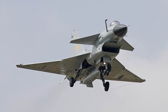 據(jù)觀察,這兩架殲-10戰(zhàn)機身披空軍涂裝,都為單座型,配有空中加油管,并且每機只在機腹下攜帶了一個副油箱。