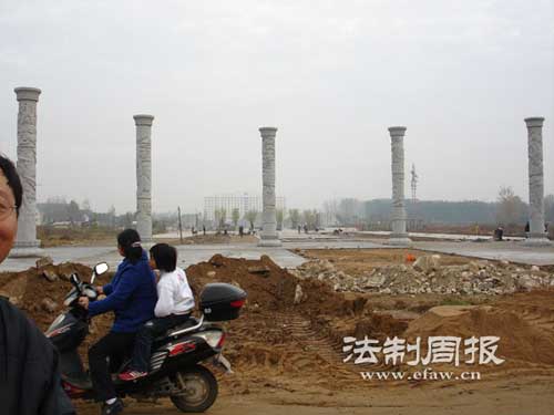一名網友還稱,修好的路全部被砸了,單對砸完的廢料的處理,工人就忙活了兩個月。最后,縣里建了個巨大的“聚寶盆”,四周又放了個叫不出名的“怪獸”,并在廣場中央弄了個“龍眼”。因廣場太大又沒遮擋,風水先生一句話,當地又建了個擋煞氣的大牌坊(當地人戲稱陵園門)。最后,風水師建議領導辦公室全部在左邊,幾乎是每人半層樓,就連每張辦公桌怎樣擺放,都有特別的講究。