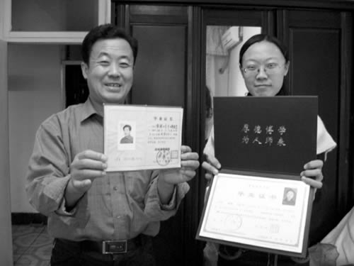 在徐桐家里,記者看到那是個巴掌大的小紅本,封面上印著燙金字,徐桐說:“30年前,一個大學生手里拿著畢業證,這就等于找到了一份穩定的工作!惫,徐桐大學畢業后被分配到沈陽市第十七中學教書,實現了自己做教師的愿望。