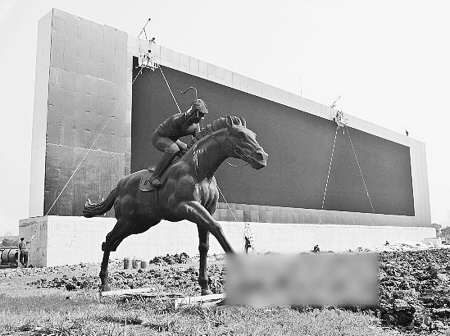 11月15日的武漢,東方馬城。三座銅像的旁邊,全國(guó)最大的戶外電視顯示屏這一天悄然落成。