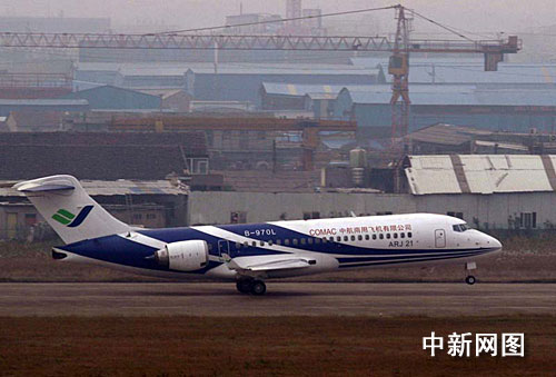 中新網上海11月28日電 (記者 孫自法)中國首架自主研制、擁有完全自主知識產權的新型渦扇支線客機ARJ21-700飛機二十八日在上海成功首飛。