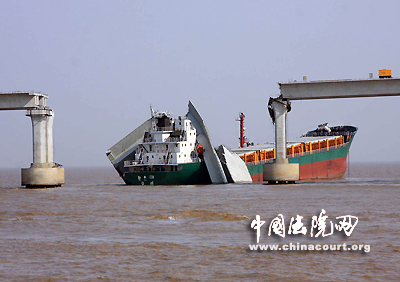 該起事故發生于今年3月27日1時許,行駛中的臺州籍“勤豐128”貨輪由于操作失誤,撞上了在建設之中的金塘大橋,致使這座連接寧波與舟山的我國第三長跨海大橋遭受重大損失,并造成4名船員死亡。事故發生后,中國人民財產保險股份有限公司浙江省分公司作為金塘大橋保險人,向舟山連島工程指揮部支付了保險賠款16216772元。4月25日,該公司以金塘大橋工程保險人的身份,代位被保險人連島工程指揮部及施工單位,向肇事方“勤豐128”輪登記的船舶所有人張友法、朱信福、林寧俊和雖未登記但已實際控制的船舶所有人王玉祥、王兆祥、王琳,以及該輪的經營人臺州市路橋某船務公司提起保險代位求償訴訟,索賠2000萬元,后變更為16216772元。7月28日,連島工程指揮部也向上述被告提起訴訟,要求索賠保險公司未予賠付的事故后各類施救費、部分未賠付的清理殘骸費用共計12447354元。后來,兩案原告又分別撤回對王玉祥、王兆祥、王琳及臺州市路橋勤豐船務有限公司的起訴。