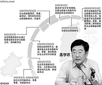 9月8日,山西省襄汾縣新塔礦業有限公司尾礦庫發生特別重大潰壩事故,事故發生的一個重要原因是當地政府及有關部門監督管理不得力。9月14日,孟學農引咎辭去山西省省長職務。這是孟學農第二次引咎辭職。