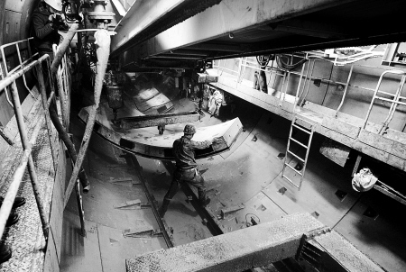 隨后,記者進(jìn)入F9地裂縫左線隧道。除隧道內(nèi)略微殘存一些燃燒過的煙味,起火點處的隧道墻壁上留有被燃燒源熏黑的印跡外,其他均恢復(fù)正常。沿隧道一直向北,就能看到盾構(gòu)機(jī)正在緊張施工。
