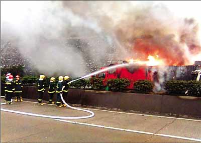 據交警介紹,車禍發生時,一輛貨車滿載打火機及洗發水等易燃易爆物品,因此火勢很猛,車上不時傳來打火機的爆炸聲,碎片不斷地從車廂內飛出,貨車的油箱也處于被烘烤狀態,隨時有爆炸的危險。