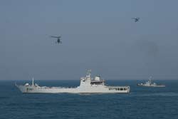 緊急出航的海上反恐艦艇編隊,向貨輪遭劫持海域全速航行,艦載機適時起飛偵尋。接到命令不到半小時,艦載機便發現目標。