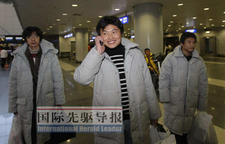 2月25日上午10點,剛抵達北京首都國際機場,這位獲救中國船員做的第一件事就是打電話給爸媽報平安,站在他身邊的是另外兩位獲救船員劉峰、宋進。短暫的停留后,三位歸心似箭的山東老鄉又搭上飛往青島的航班。