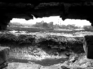 3月17日,民權縣磷肥廠“遺址”。廠子已被爆破,圍墻顯得殘破。廠內,巨大鋼鐵構件橫七豎八,倒臥在地。廠外,大沙河呈暗褐色,飄出陣陣惡臭。