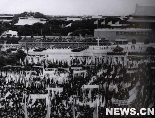 "中國共產黨萬歲!""毛主席萬歲!"的歡呼聲響徹天安門的廣場。人民感謝偉大祖國社會主義建設的組織者和鼓舞者。