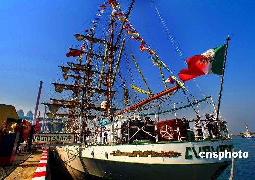 記者在現場看到,青島市民可登上部分外國軍艦甲板參觀。造型獨特的墨西哥海軍“夸烏特莫克”號風帆訓練艦最吸引公眾目光,不少市民爭相拍照留念。