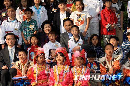 不一會兒,李明博總統攜夫人金潤玉一起走來,孩子們迎上前去。李明博一眼就認出了他在大地震發生后不久訪問四川時曾抱過的魏月濠小朋友。李明博撫摸著魏月濠的頭,親切地說:“長大了不少!