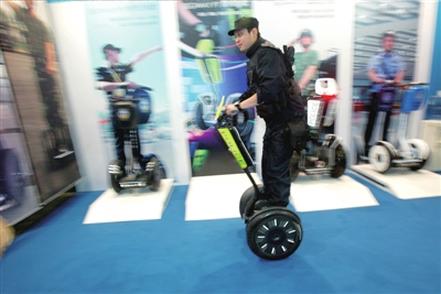 在2008年北京奧運(yùn)會(huì)期間,一種可以站著駕駛的兩輪小車給觀眾留下了深刻印象。在此次展會(huì)上,這種名叫segway的小車特別推出了警用版。警用版的segway具備視野開闊、機(jī)動(dòng)靈活等特點(diǎn),一旦發(fā)生突發(fā)事件,特別是在擁堵的路況下,使用segway可以在最短時(shí)間內(nèi)到達(dá)現(xiàn)場。