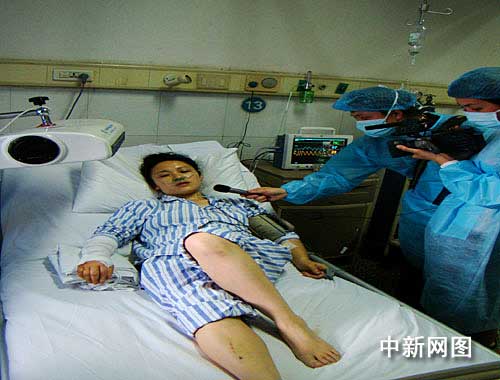 躺在病床上的谷萬芳年齡約三十歲,神情憔悴,眼睛里還存留著一絲劫后余生的驚恐和慌亂。記者看到,谷萬芳的雙上肢受傷較嚴重,右手臂上纏繞著厚厚的繃帶,左手臂也無法動彈;雙腿裸露在外的皮膚上還能看見一尺長劃傷和青紫傷痕。