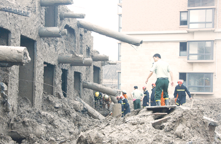 據了解,發生倒塌的住宅樓由上海眾欣建筑有限公司承建,開發商為上海梅都房地產開發有限公司。附近居民告訴記者,該樓房已進入最后工期,原計劃今年底交付,其中大部分已售出,均價約為每平方米1萬8千元。目前,小區內其他幾棟樓已暫停施工。記者在現場看到,小區周圍已拉起了警戒線,房屋整體朝南側倒下,13層的房體出現巨大裂縫,但并未解體,有些房間的窗戶還沒有裝上,樓房底部原本應深入地下的數十根混凝土管樁被“攔腰折斷”后裸露在外,觸目驚心。