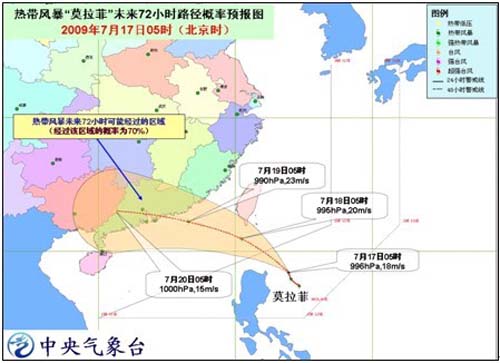 中新網(wǎng)7月17日電 據(jù)中國氣象局網(wǎng)站消息,7月16日晚,菲律賓呂宋島以東洋面的熱帶低壓加強(qiáng)為今年第6號熱帶風(fēng)暴“莫拉菲”(MOLAVE)。