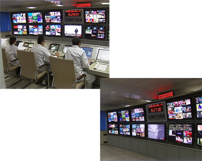 這是陜西廣電網(wǎng)絡(luò)公司的運行調(diào)度部的前端機房,它是把省市縣三級網(wǎng)絡(luò)貫通,進(jìn)行整合,陜西省內(nèi)的電視用戶收看的數(shù)字電視節(jié)目,就是通過這個機房傳輸過去的。