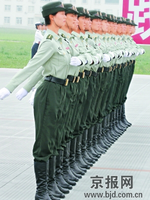 “軍旅標兵”三軍儀仗隊同樣在進行高強度的閱兵訓練。《解放軍報》報道說,有關統計稱,儀仗隊官兵每人每天所走的正步加起來,3年就是一個兩萬五千里長征;每人每天流汗水加起來,兩年足有一噸重;由于數萬次地端槍,所有儀仗隊員都有一雙帶著老繭的手。