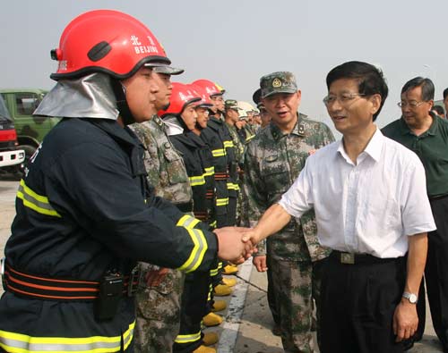 他指出,北京及周邊省區市要把 “護城河”工程的各項措施落到實處,不留工作死角,最大限度地消除不穩定因素。要科學合理地安排警力,統一協調指揮,搞好后勤保障;要堅持群防群治,緊緊依靠群眾,構筑嚴密的防控網絡。全國各地都要支持維護首都的穩定,攜手共同構筑國慶安全屏障。