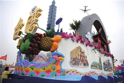 張偉斌說,北京的彩車旨在突出“人文、科技、綠色”三大主題,彩車周圍是故宮的圍墻,加以紅色的飄帶和綠色的彩飾,前端是天壇的微型建筑,中間是一個轉(zhuǎn)盤,尾端是鳥巢和水立方的結(jié)合。