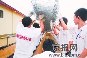 在房山一間面積達1500米的煙花專用倉庫,200名熊貓煙花工作人員星夜兼程,干了近100天,將30余萬發煙花分別定位到3個巨型網幕上。為了防備國慶夜降雨,技術人員使用了電子加固器,給“網幕焰火”穿上了統一規格的“風雨衣”。