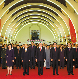為熱烈慶祝偉大的中華人民共和國成立60周年,上海市市長韓正昨晚在上海展覽中心舉行盛大國慶招待會,中共中央政治局委員、上海市委書記俞正聲與800位中外來賓歡聚一堂,共慶共和國偉大光輝的節日。