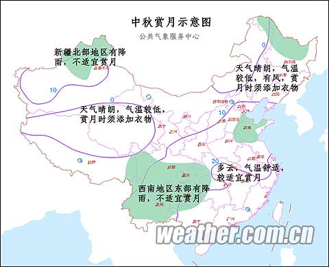 據(jù)目前的數(shù)據(jù)資料分析,明天我國大部地區(qū)以晴到多云的天氣為主,適宜賞月。西北地區(qū)大部、東北中南部等地天氣非常晴朗,不過夜間氣溫比較低,東北地區(qū)風(fēng)還會比較大,賞月時應(yīng)注意添衣保暖;華北中南部、長江中下游地區(qū)以及東南沿海地區(qū)天空云量將比最前兩天增多,以多云天氣為主,不過氣溫舒適,還能欣賞到“彩云追月”的朦朧美景。