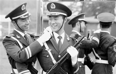 這個方隊60%是擁有雙學(xué)士學(xué)位的國防生,大多畢業(yè)于名牌大學(xué)。剛進閱兵村時,他們坦言:選擇受閱,或為開闊眼界,或為積累資本,或為分配個理想單位,等等。“方隊要走得齊,首先人員的思想要齊;強化當代革命軍人核心價值觀,才能提升學(xué)員的精氣神。”方隊政委趙建雄對“癥”開“方”。