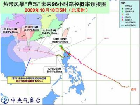 受“芭瑪”和冷空氣的共同影響,10日白天到夜間,臺灣海峽、巴士海峽、巴林塘海峽、南海中北部海域、臺灣以東洋面、臺灣沿海、福建中南部沿海、廣東東部沿海將有7-8級大風(fēng),部分海域陣風(fēng)可達(dá)9-10級,另外東海大部也將有6-8級大風(fēng)。