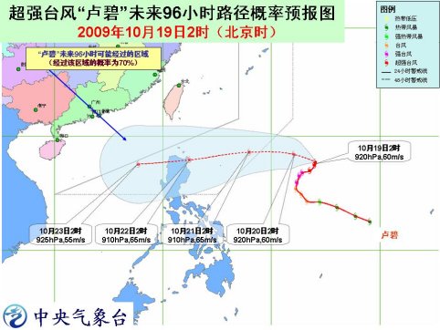 預計,“盧碧”將先以每小時5公里左右的速度緩慢向偏北方向移動,19日中午以后將逐漸轉向西偏北方向移動,移速逐漸加快,強度還將有所增強。受“盧碧”和冷空氣的共同影響,19日白天到夜間,臺灣海峽、臺灣以東洋面、巴士海峽、巴林塘海峽、臺灣沿海、福建沿海的風力將逐漸加大到7-8級,部分海域和地區陣風可達9-10級。