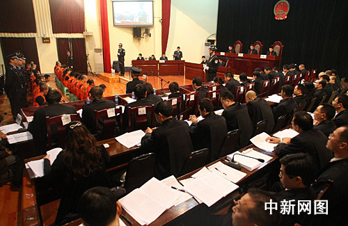 中新網(wǎng)重慶10月26日電 26日上午,備受關(guān)注的原重慶市人大代表、億萬富翁黎強(qiáng)團(tuán)伙涉黑案在重慶市第五中級(jí)人民法院公開開庭審理,31名被告人出庭受審。黎強(qiáng)被控犯組織、領(lǐng)導(dǎo)黑社會(huì)性質(zhì)組織罪、聚眾擾亂交通秩序罪、聚眾擾亂社會(huì)秩序罪、聚眾擾亂公共場(chǎng)所秩序罪、尋釁滋事罪、隱匿會(huì)計(jì)憑證、會(huì)計(jì)賬簿罪、行賄罪、非法經(jīng)營(yíng)罪、偷稅罪九項(xiàng)罪名。