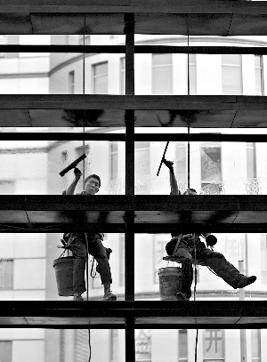 這家保潔公司有1000多名工人,爬墻工屈指可數,還都由別的崗位客串。