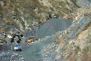 昨日中午,記者再次驅(qū)車來到事發(fā)礦點所在地東江生產(chǎn)隊北崖附近,唯一的盤山道中間仍停著一輛無牌白色吉普車,兩名身材魁梧的男子站在一旁,禁止任何調(diào)查組以外的人員進(jìn)入。