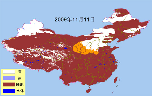 從多源衛星遙感積雪信息生成的全國積雪覆蓋監測圖可見,11月11日,山西全境、寧夏全境、河北中部和北部、陜西中部和北部、河南北部、甘肅東部、內蒙古中東部、北京中部、天津南部等地有積雪覆蓋。和10日積雪覆蓋圖相比,明顯出現新增積雪的地區包括寧夏大部、山西南部、陜西中部、甘肅東部等地。