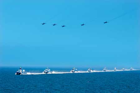 導(dǎo)彈艇大隊(duì)是一支伴隨著軍事變革滾滾浪潮應(yīng)運(yùn)而生的新生力量。該型導(dǎo)彈艇信息化程度高,機(jī)動(dòng)靈活,隱身效果好,攻擊距離遠(yuǎn),突擊威力大,官兵稱之為“海上狙擊手”。