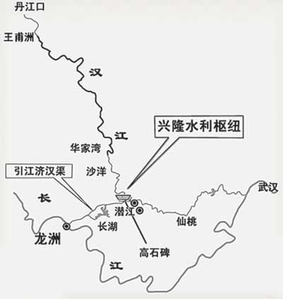 經過多年爭議和論證,引江濟漢工程設計方案到2009年9月通過專家評審。根據設計,從長江荊江河段引水至漢江興隆河段,進水口位于荊州市李埠鎮,出水口位于潛江市高石碑鎮,全長約67公里。