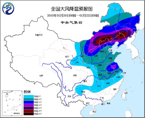 20日14時至22日14時,西北地區(qū)東部、內(nèi)蒙古大部、華北、東北、黃淮、江淮、江漢、江南北部、貴州等地自西向東、自北向南將先后有4~6級、陣風7級偏北風;上述地區(qū)的氣溫將下降8~12℃,其中,內(nèi)蒙古中東部、華北北部、東北地區(qū)中南部、江淮東部等地降溫幅度可達14~16℃,內(nèi)蒙古中部、東北地區(qū)東南部的部分地區(qū)降溫達18~20℃。
