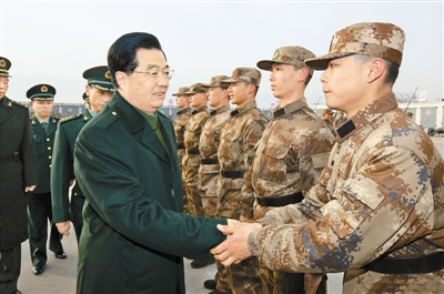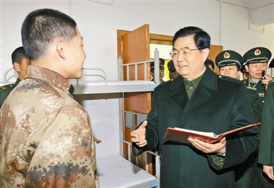 1月的關中大地寒風襲人,軍營里卻暖意融融。正在陜西省考察工作的中共中央總書記、國家主席、中央軍委主席胡錦濤,專程來到蘭州軍區某部高炮旅視察。