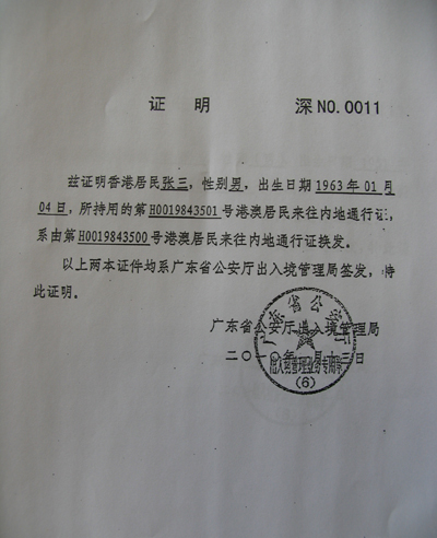 通行證換發(fā)證明:港澳居民因在內(nèi)地辦理相關(guān)業(yè)務(wù)需要,可分別向香港、澳門中國旅行社申請辦理通行證換發(fā)證明(式樣見附件2、3)。該證明由廣東省公安廳出入境管理局統(tǒng)一出具,證明新通行證根據(jù)原通行證換發(fā)。