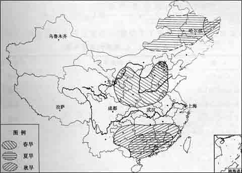 2007年我國年降水總量接近常年,但降水空間分布不均。與常年比較,西多東少,其中西北地區中西部明顯偏多、東部地區中間(淮河流域)偏多、南北偏少,其中北京、內蒙、黑龍江、江西、湖南、廣東等地較常年偏少1~3成,發生了不同程度的干旱。年內我國部分地區發生了大范圍、持續性的嚴重干旱,主要的干旱事件有:華北、西北、黃淮部分地區發生大范圍春旱,四川盆地出現初春旱;內蒙古、遼寧和吉林初夏旱嚴重,黑龍江遭遇歷史罕見夏旱;江南、華南大部分地區7月至8月上旬降水持續偏少,伏旱嚴重;9月上旬至12月中旬,江南、華南又發生了50年一遇特大秋旱連初冬旱。2007年,受旱較重的省(區)有:黑龍江、內蒙古、吉林、寧夏、湖南、江西、河北、河南、陜西等?傮w來看,2007年,我國干旱范圍較大,局地干旱非常嚴重;全國因旱受災面積多于1991年以來的平均值。