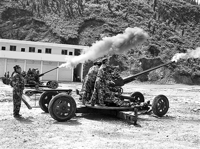 面對嚴峻的干旱形勢,湄潭縣人武部積極與氣象部門保持熱線聯系,了解天氣變化趨勢,隨時組織民兵高炮分隊實施人工增雨作業。今天上午,他們得知在湄潭部分鄉鎮將有陣雨情況后,立即組織民兵高炮分隊,啟動人工增雨應急預案,實施增雨作業。10時18分,該縣6個人工增雨作業點準備就緒,一門門锃亮的炮口直沖天空。