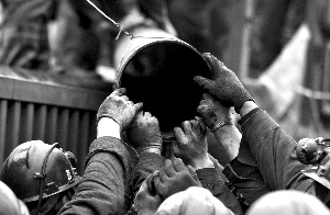 至昨晚記者發稿時,離事故發生已有30多個小時,王家嶺礦透水事故中的153名被困人員仍無音訊。據下井的救援人員說,水面距離礦口約1000米,積水已沒過巷頂。
