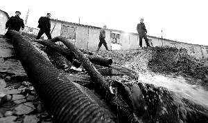 ●3月29日晚8時(shí) 4臺(tái)水泵安裝到位,開始抽水。