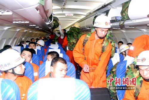 目前,南航的第一架救援包機(jī)已于16時(shí)30分滿載著157名公安消防部隊(duì)官兵、2.2噸生命探測(cè)儀等設(shè)備,從廣州白云機(jī)場(chǎng)起飛,飛赴青海西寧機(jī)場(chǎng)。據(jù)執(zhí)行此次航班的南航廣州飛行部A320機(jī)隊(duì)副經(jīng)理朱文學(xué)、副駕駛張漫綠機(jī)組介紹,目前除廣州地區(qū)有雷雨天氣外,航路天氣情況良好,如果正常飛行,飛機(jī)將在三個(gè)小時(shí)內(nèi)抵達(dá)災(zāi)區(qū)機(jī)場(chǎng)。