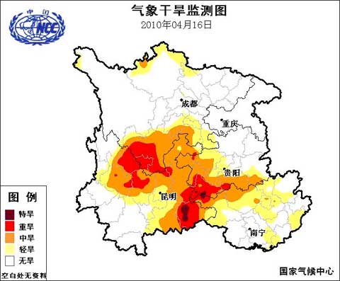 中新網4月16日電 中央氣象臺16日18時繼續發布干旱黃色預警:據監測,云南中北部和東部、貴州西部和南部、廣西西北部、四川南部仍存在中度以上氣象干旱。未來三天,貴州西南部、廣西西北部、云南東部、四川南部有一般不足5毫米的降雨,廣西東部的局部地區有中到大雨。西南主要旱區大部地區氣象干旱仍將持續。