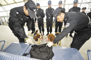 從昨天(23日)起,一隊隊全副武裝的特勤隊員開始在南京地鐵一號線車廂內巡邏,他們個個身強體壯,受過專業訓練。更值得一提的是,在這支隊伍中還有四只活潑可愛的“史賓格”犬。這是南京警方新成立的軌道交通乘警大隊,從現在開始,這支乘警大隊將擔負起南京地鐵全線的巡邏執勤任務,保障市民的出行安全。