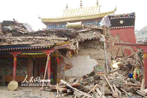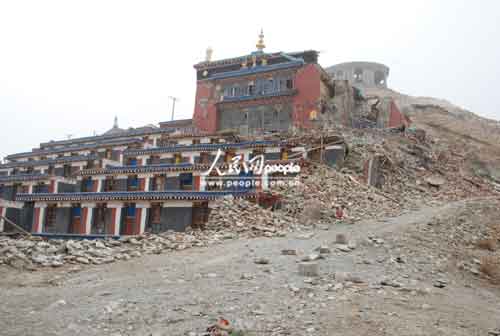 距結古鎮約20公里的禪古寺是該地區噶舉派最大的寺院,也是地震中損毀最嚴重的寺廟,3個主殿堂損毀兩座,經堂全部倒塌,有260間僧房與兩個閉關等也被全部毀壞,更重要的是還有大量佛教用品和珍貴文物埋在廢墟下。