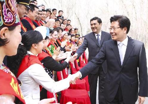 29日下午,在“五一”國際勞動節即將來臨之際,自治區黨委書記張春賢等領導與參加2010年全國勞動模范和先進工作者表彰大會載譽歸來的我區全國勞動模范和先進工作者舉行座談,共話新疆美好的明天。他強調,要在全社會弘揚勞模精神,凝聚廣大職工群眾的智慧和力量,共同建設美好新疆。