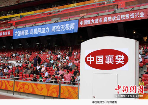 目前,襄樊市已在鳥巢體育場(chǎng)外圍懸掛236面宣傳襄樊形象的廣告彩旗,場(chǎng)內(nèi)懸掛巨幅宣傳標(biāo)語20幅,在阿迪力居住的小屋三面噴繪襄樊古城風(fēng)貌、古隆中、汽車城等內(nèi)容的宣傳片。下一步,還將在鳥巢內(nèi)舉辦襄樊日等活動(dòng),以提高襄樊知名度,提升襄樊形象。