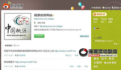 桃源縣在去年11月2日首次開通新浪微博開始了政府網絡問政的嘗試,為湖南省乃至全國第一家政府微博。在開通的半年多時間里,“桃源微博”經歷了由政績發布平臺到注重桃源風土人情宣傳、注重與網友互動的改變。雖然是湖南省內、國內首個政府微博,桃源縣政府的微博卻不夠搶眼,“桃源微博”極少出現在公眾視野中,甚至一度被云南微博搶去“首個政府微博”稱號。